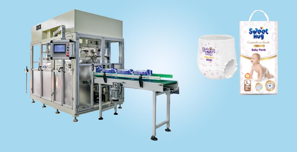 P28包裝機是主要用于衛生巾、嬰兒紙尿褲(小包)、嬰兒護理墊、棉柔巾等裝袋封口的全自動包裝機。