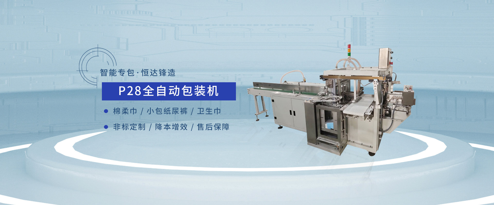 廈門恒達鋒機械有限公司成立于2008年,是一家集產品研發、生產、銷售、服務于一體的現代型企業。恒達鋒系列產品已覆蓋護理墊、衛生巾、紙尿褲、拉拉褲、寵物墊等后道全自動包裝及半自動包裝等整體解決方案,產品并逐漸延伸至醫療、化妝品、食品等包裝裝備領域。